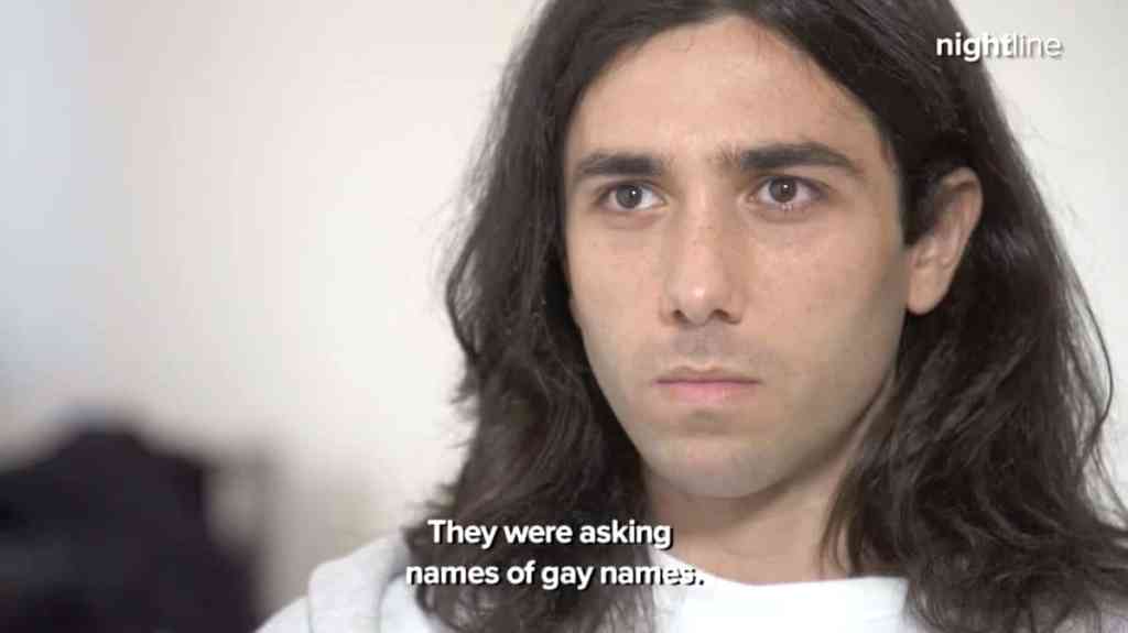 Amin Dzhabrailov, who was captured and tortured and beaten for days, described his experience, telling Nightline that his captors staged his execution: “They tell me that they know that I'm gay, and [to] tell [them] about more gay guys… The sense was [they would] probably just torture them also. … I didn't give any name[s]. … They took off my shoes… and they put me on the wall, put [a] bag on my head…. That guy charged his gun, and put [it] right here on my head. And I started painting the wall with my blood. And he said that it's my last seconds.