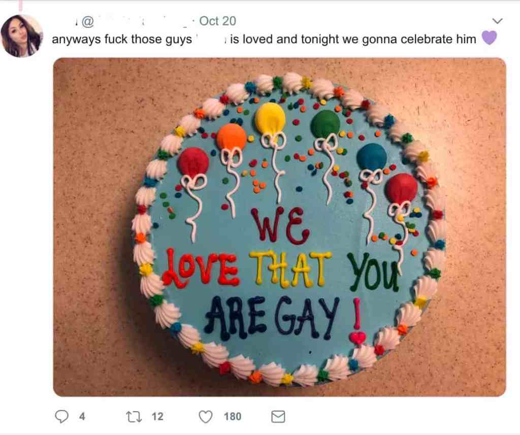 Said the tweet: “I am a boy and i am on the cheer team. i understand that people might think that's different but when it comes down to it nobody deserves to be talked about in a negative way at all. it doesn't matter your sexual orientation, your gender, your religion, your race or anything else. … everyone should be treated equally and it hurts my heart that people on the football team that are almost fully grown and are talking about me and my teammates and bashing us for no reason other than me being gay and a freshman and my friends sticking up for me. … THEN saying that nobody was talking bad about us or anything during the rally the people behind you heard everything you said and know your jersey number. i had nothing but respect for every single person on that team and everyone else i had no negative opinions on anyone. … i mind my business everyday when i get to school and i never wanted anything bad to happen to myself, anyone that i care about, and everyone else otherwise. thank you to everyone that is doing what they can to help me and my teammates, and everyone that is checking up on me.”