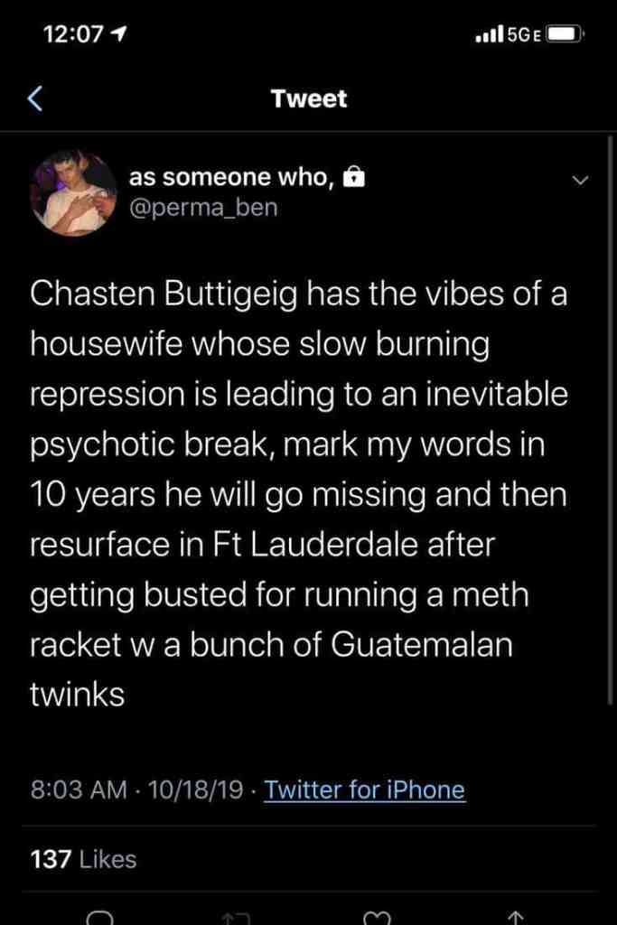 In other tweets, Mora called for Hillary Clinton to be “catapulted off the planet.” He also wrote that Buttigieg was “psychotic” for deploying to Afghanistan, adding that he could “never trust buttigieg because he combined the natural devious disposition inherent in gay men with a bloodthirsty careerist drive.”