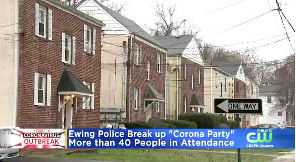 Police on Saturday broke up a 47-person “corona party” in a 550 square foot apartment drinking to a DJ in defiance of New Jersey's social distancing order. The party took place in Ewing Township, outside of Trenton, according to police.