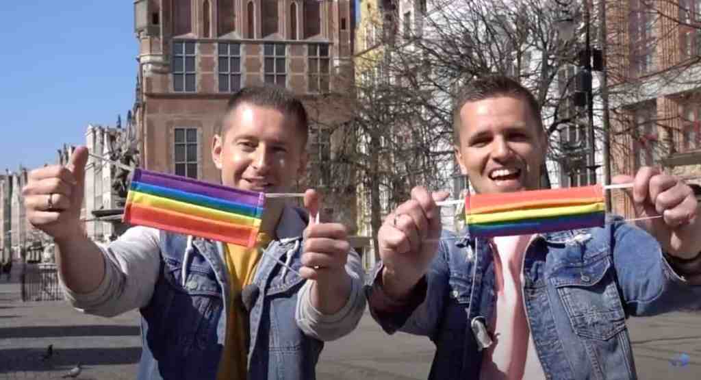 Jakub and Dawid Mycek-Kwiecinski, a gay married couple in Poland, are fighting coronavirus and LGBTQ stigma by handing out free rainbow face masks to the public.