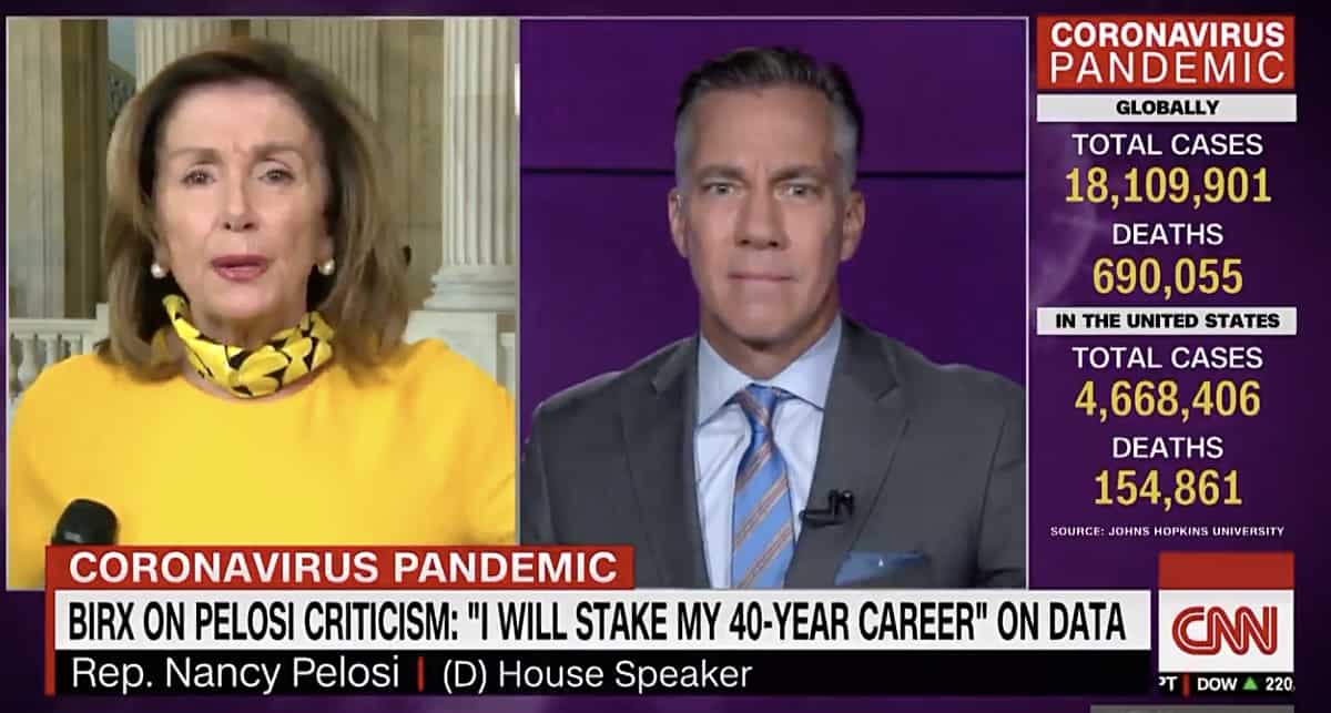 On CNN Monday, House Speaker Nancy Pelosi was asked about remarks she made over the weekend in which she said she had no confidence in Dr. Deborah Birx, Coronavirus Response Coordinator for the White House Coronavirus Task Force since February 2020.