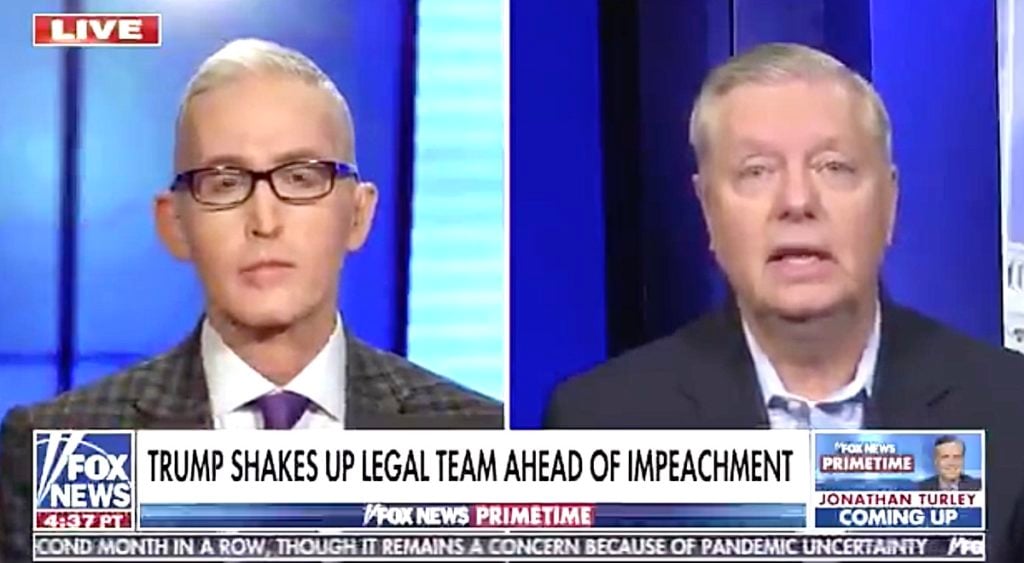 Said Graham to former congressman and now FOX News host Trey Gowdy: “If the House managers want to use this as a political commercial against Donald Trump and Republicans and they want to call witnesses now they didn't call during the impeachment trial in the House this thing could go for weeks or months and that would be bad for the country.”