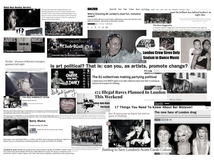 There is also more to LGBTQ+ nightlife than venues. In 2016, when we began our research, we found events run by and for women, trans and non-binary individuals and people of colour in and outside of LGBTQ+ venues were starting to thrive as collectives and club nights multiplied. Audiences for these events also grew, creating strong reputations for great parties with inclusive atmosphere