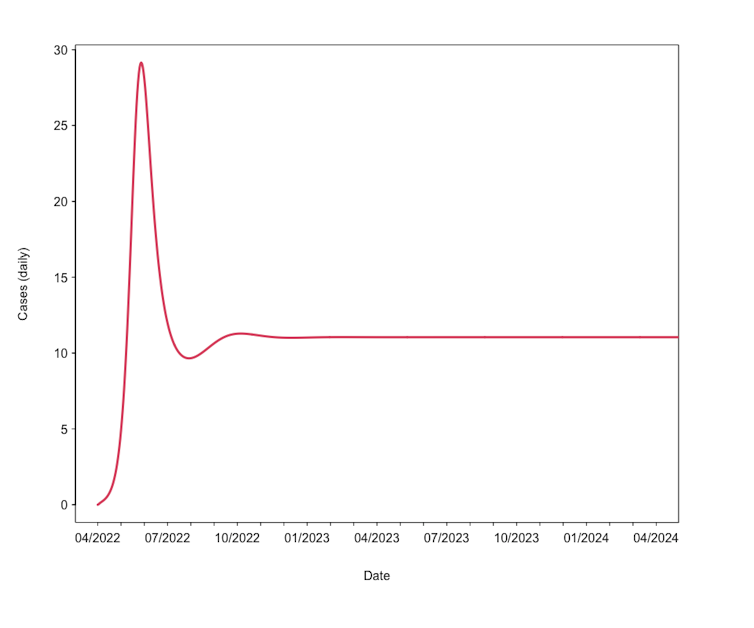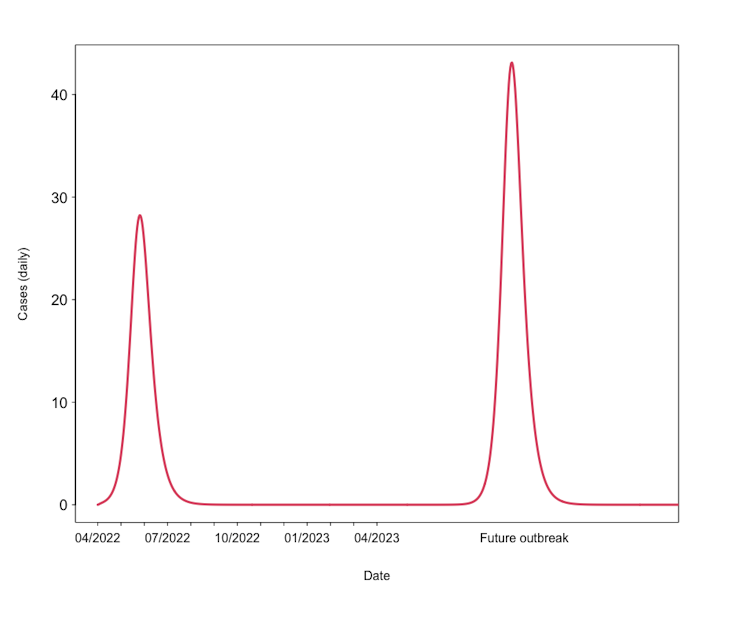 The current epidemic might be the first instance of a series of outbreaks. In the long term (scenario 4), we should expect a return of monkeypox caused by future “zoonotic events” where the disease jumps from animal hosts to humans. As the cross-immunity from smallpox vaccines wanes, the epidemics can become even more substantial.