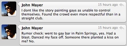John Mayer explained on Twitter that he wanted to clear up the recent Palm Springs gay kiss story because he didn't like the fact that it painted … [Read more...] about John Mayer: I Went to a Gay Bar, But I Did Not Kiss a Dude