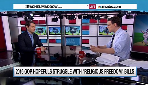 Steve Kornacki, filling in for Rachel Maddow, took a look at LGBT non-discrimination statutes around the country following a crazy week in which … [Read more...] about GOP Candidates Siding with Evangelicals Over Business in LGBT Discrimination Battle: VIDEO